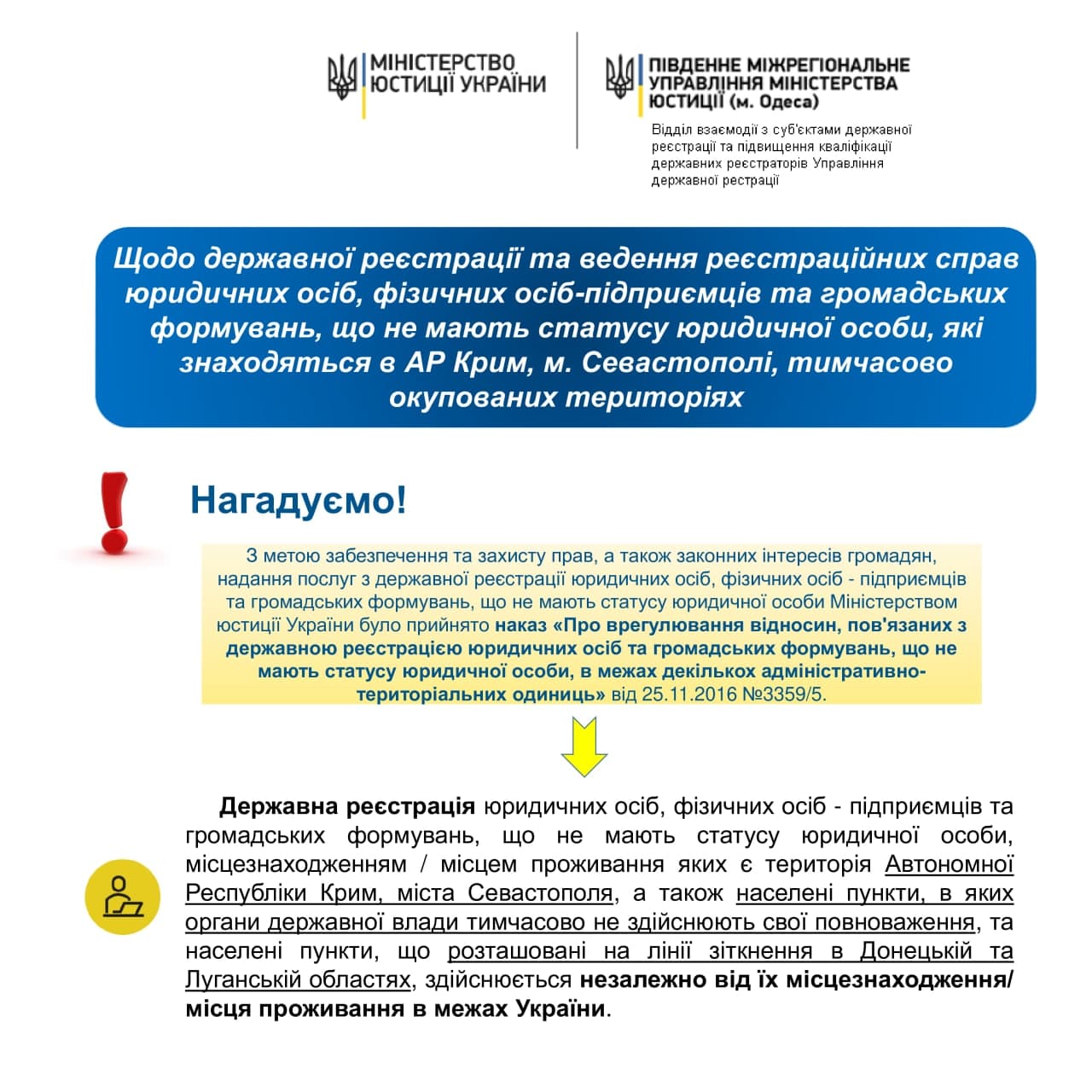 Методичні рекомендації щодо державної реєстрації та ведення реєстраційних справ юридичних осіб, фізичних осіб-підприємців та громадських формувань, що не мають статусу юридичної особи, які знаходяться в АР Крим, м. Севастополі та тимчасово окупованих тери