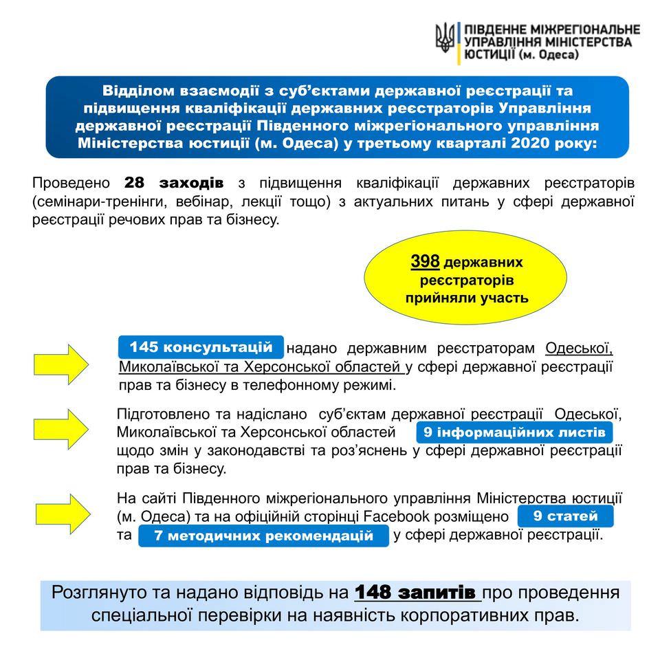 Методичні рекомендації щодо результатів діяльності відділу взаємодії з суб'єктами державної реєстрації та підвищення кваліфікації державних реєстраторів Управління державної реєстрації Південного міжрегіонального управління Міністерства юстиції (м. Одеса)