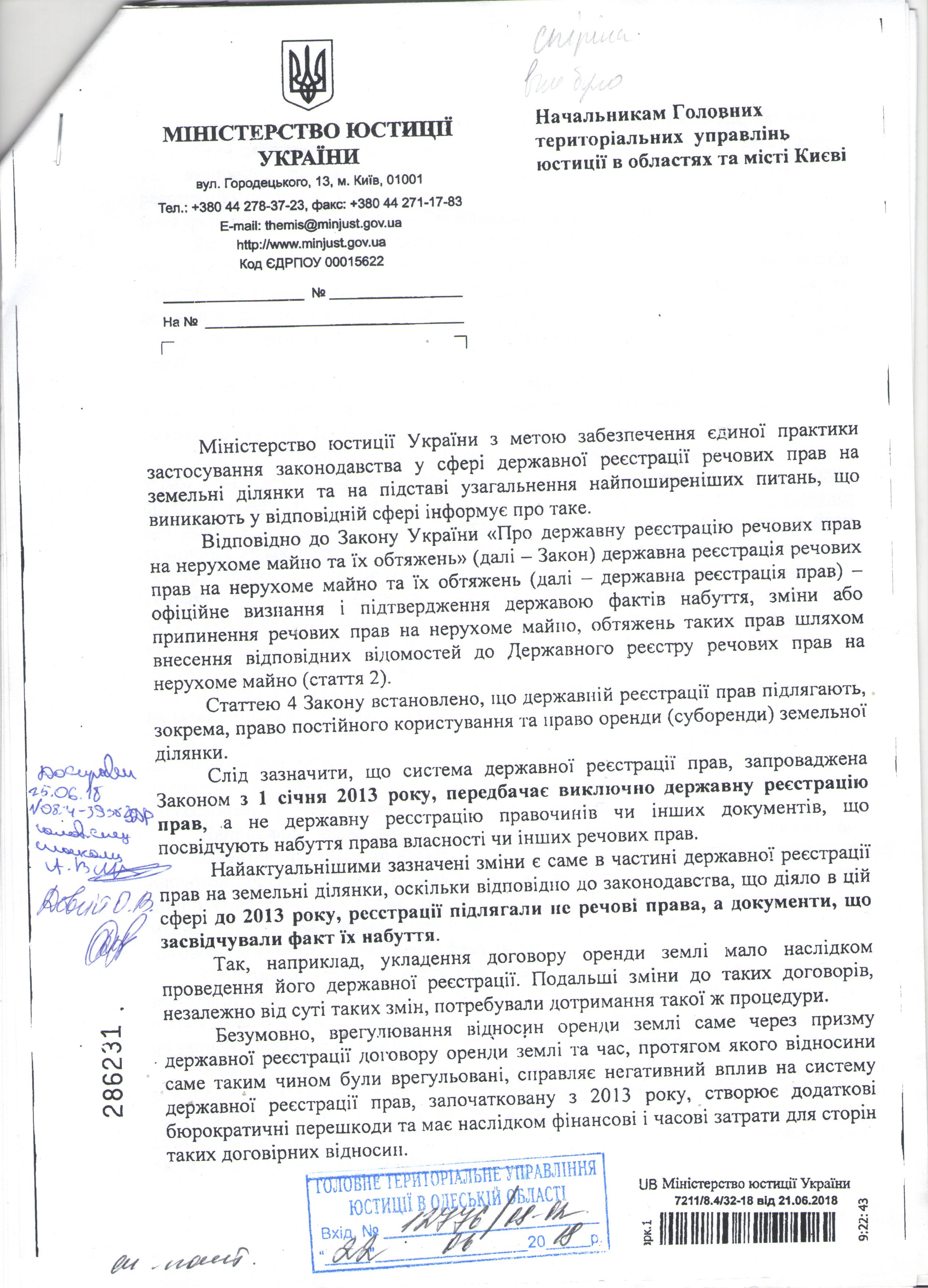 Лист Мінстерства юстиції України 7211/8.4/32-18 від 21.06.2018