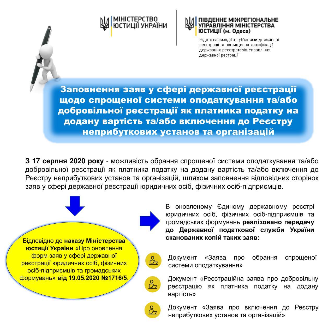 Методичні рекомендації стосовно заповнення заяв у сфері державної реєстрації щодо спрощеної системи оподаткування та/або добровільної реєстрації як платника податку на додану вартість та/або включення до Реєстру неприбуткових установ та організацій