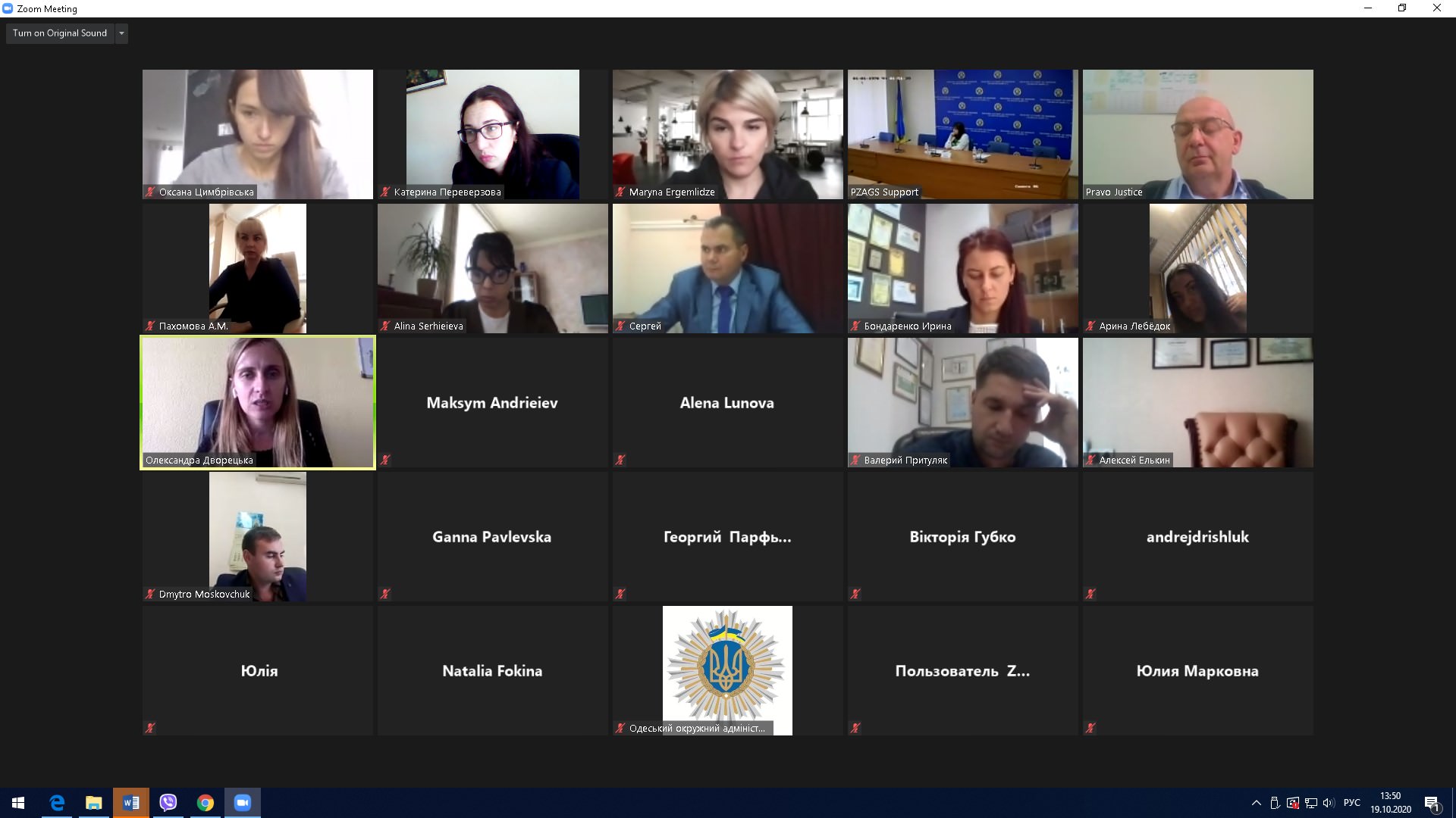 19.10.2020 взято участь у засіданні Одеської регіональної ради реформи правосуддя, організованої проектом ЄС «Право – Justice»